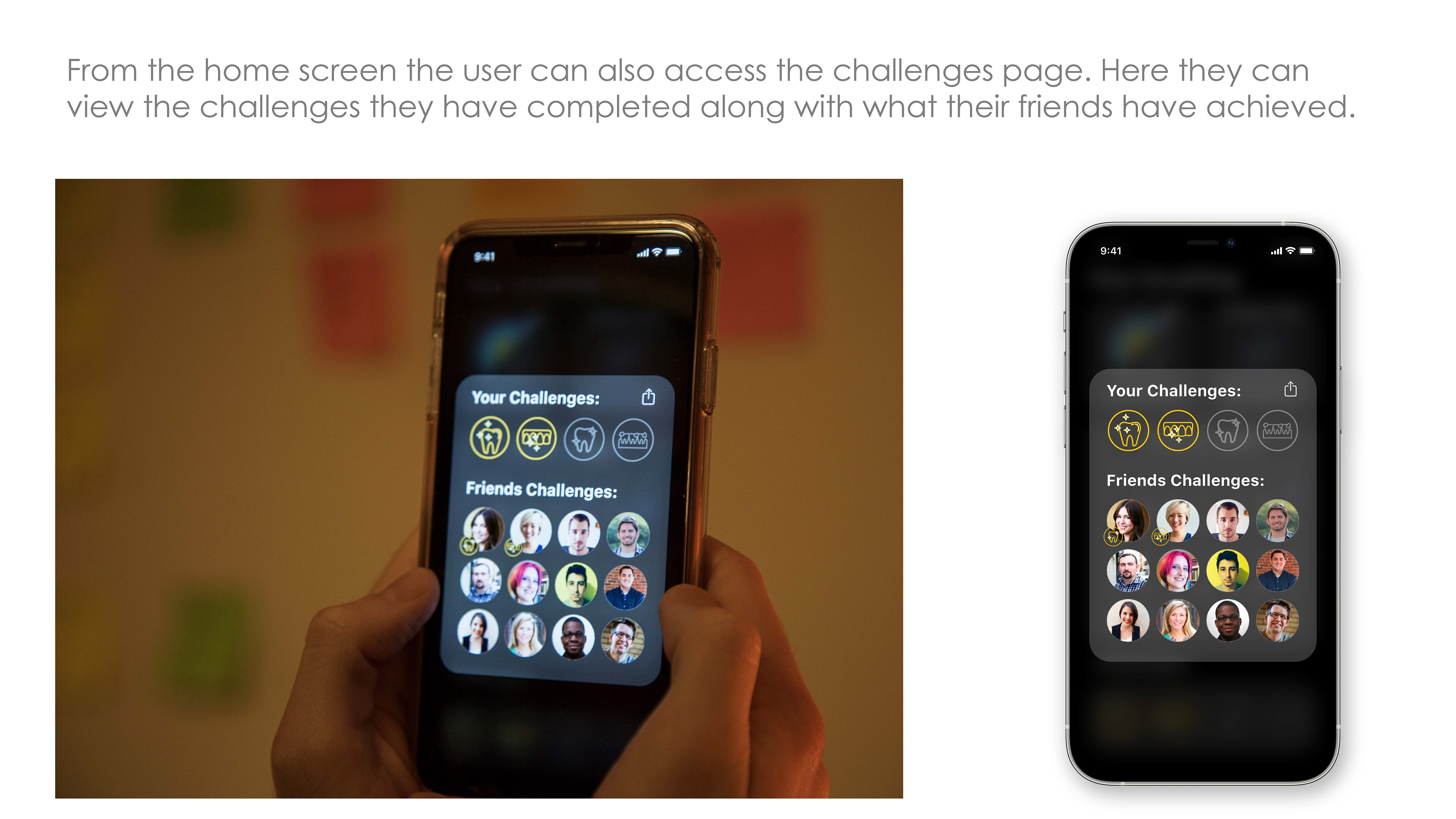 Also, we found that there don’t seem to be many aspects of dental care that people like, so by incorporating challenges and friends it will hopefully encourage people to engage more with dental care resulting in healthier teeth.